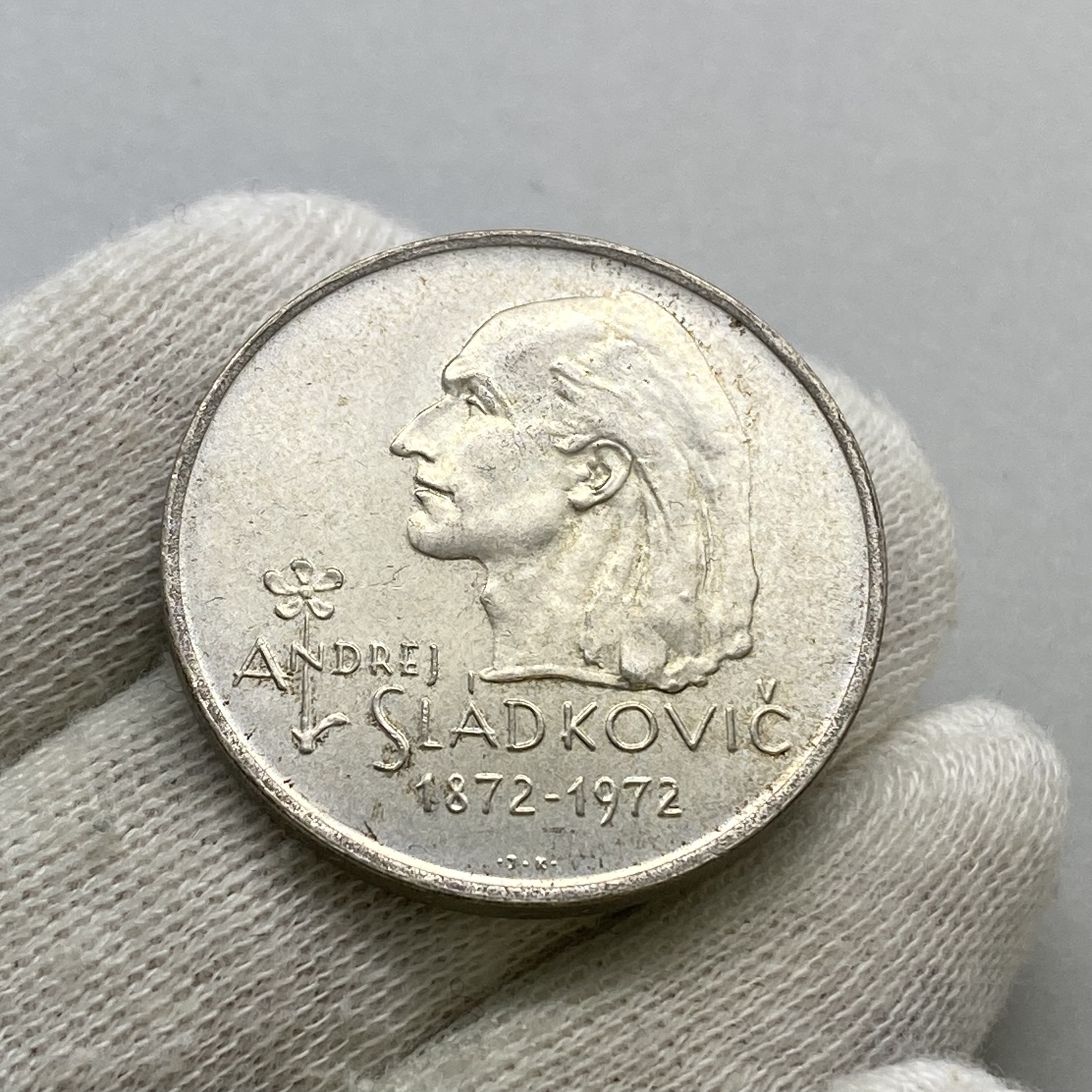 Pamětní stříbrná mince vydaná v Československu v roce 1972 k 50. výročí úmrtí Andreje Sládkoviča.