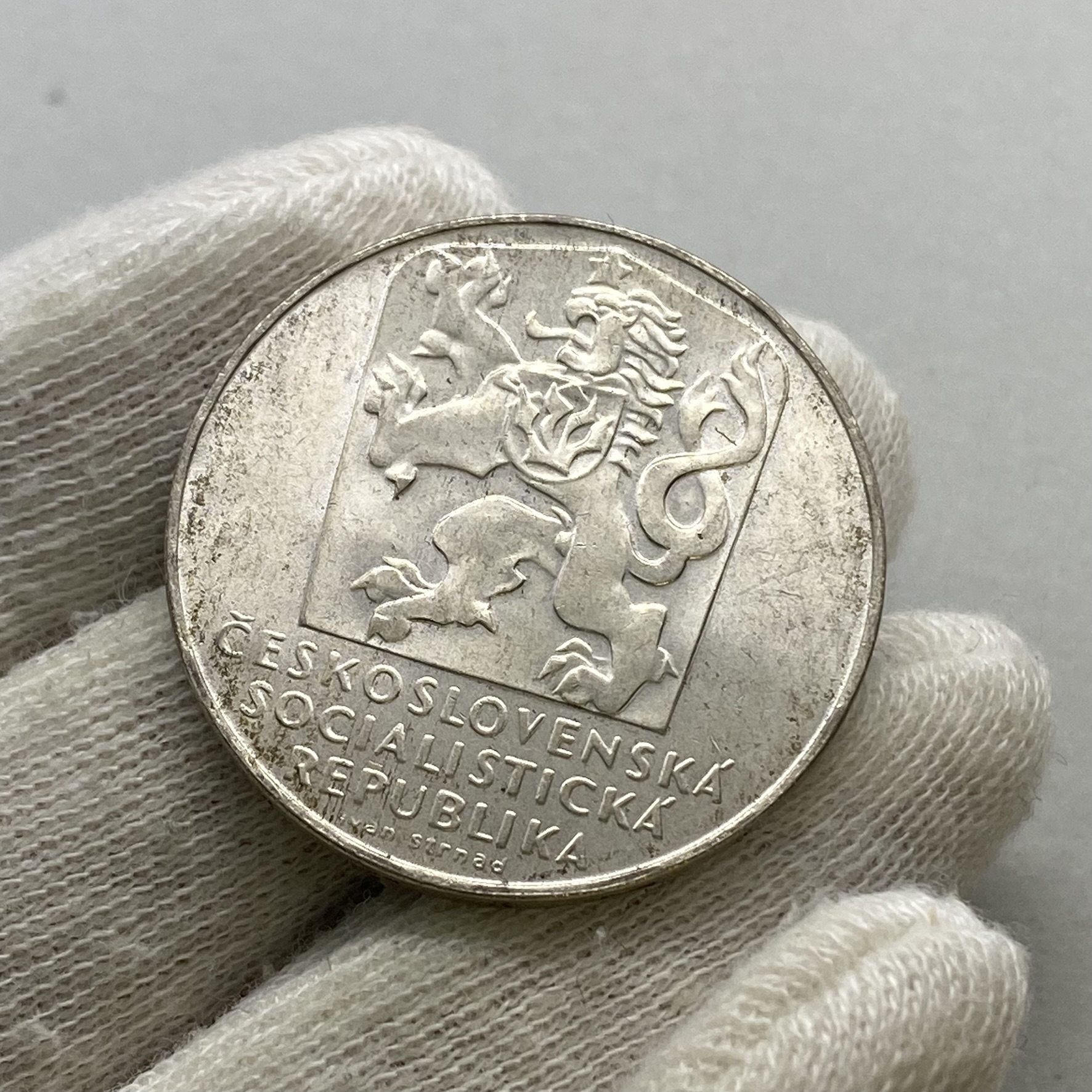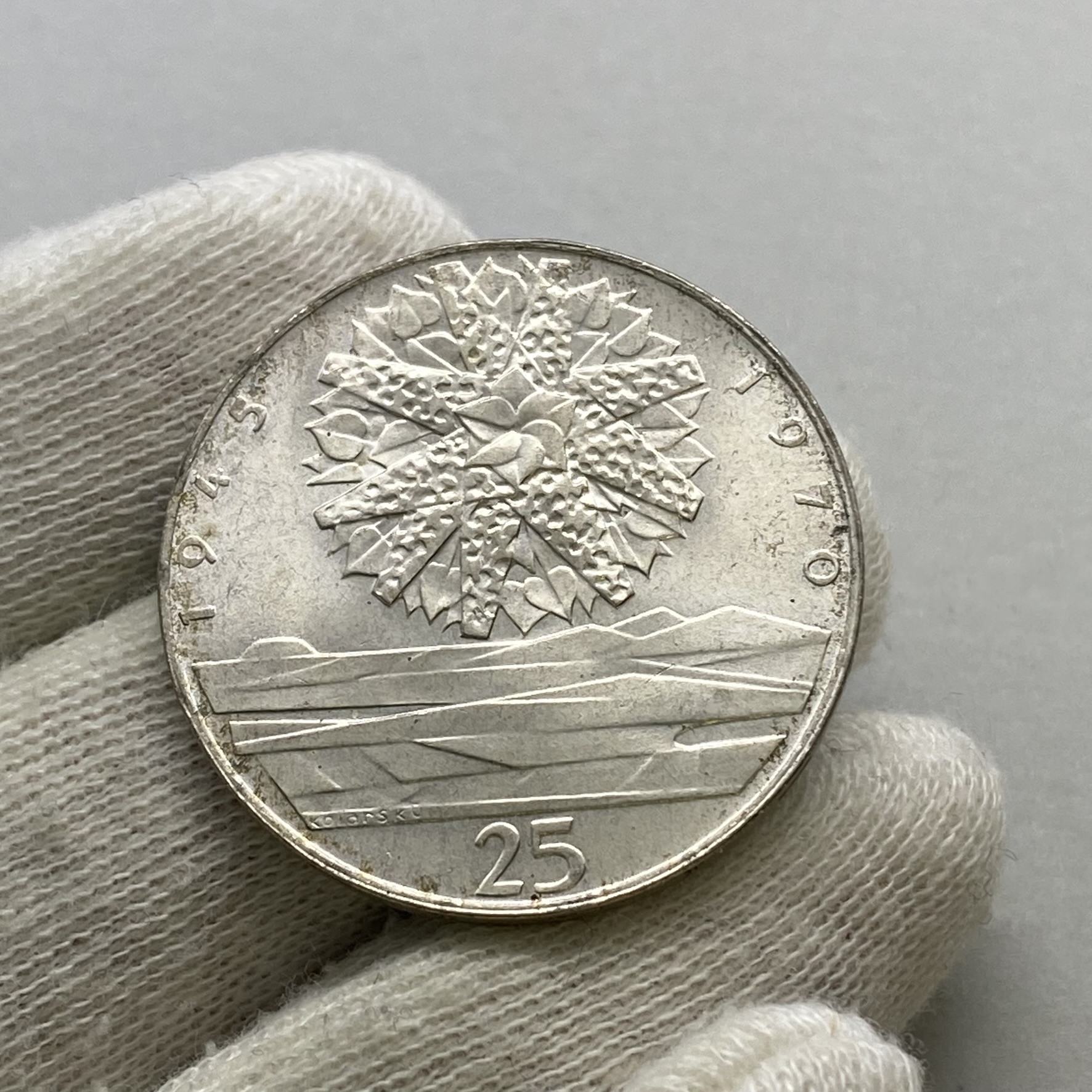 Pamětní stříbrná mince vydaná v Československu v roce 1970 k 25. výročí osvobození Československa.